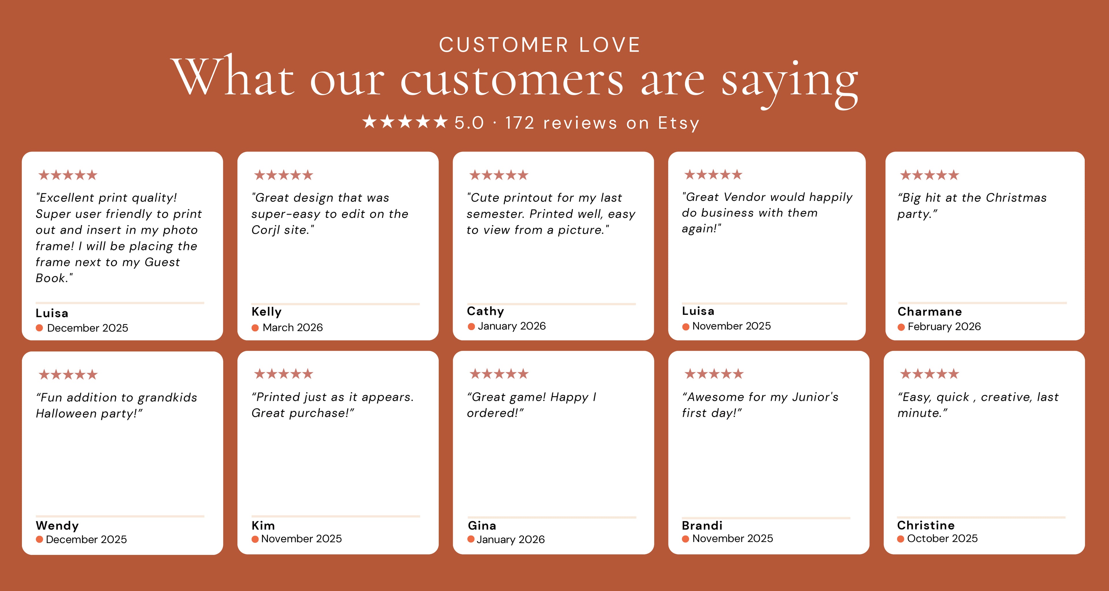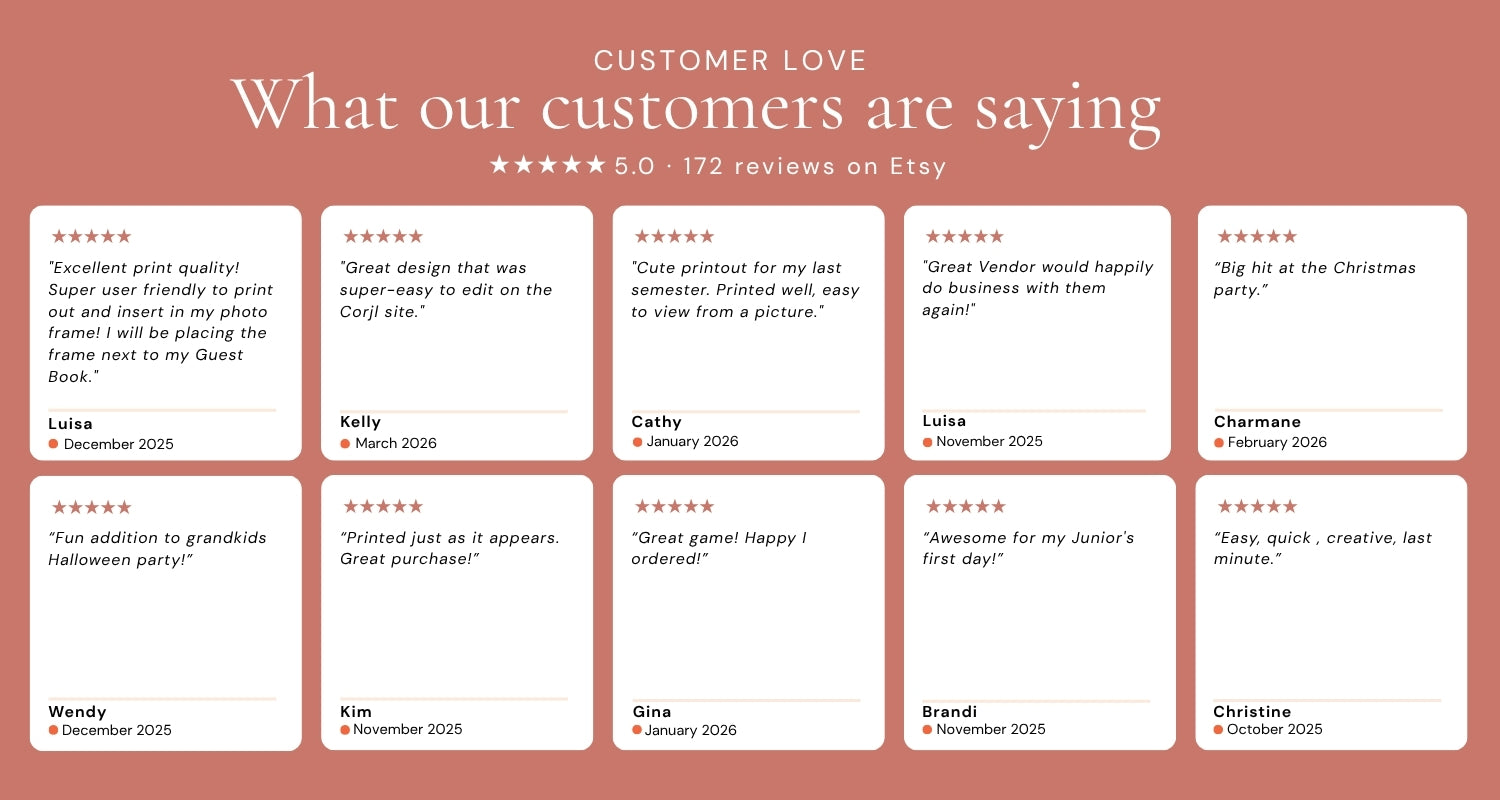 Print at home or send the file to a local print shop. Your celebration comes together in minutes.