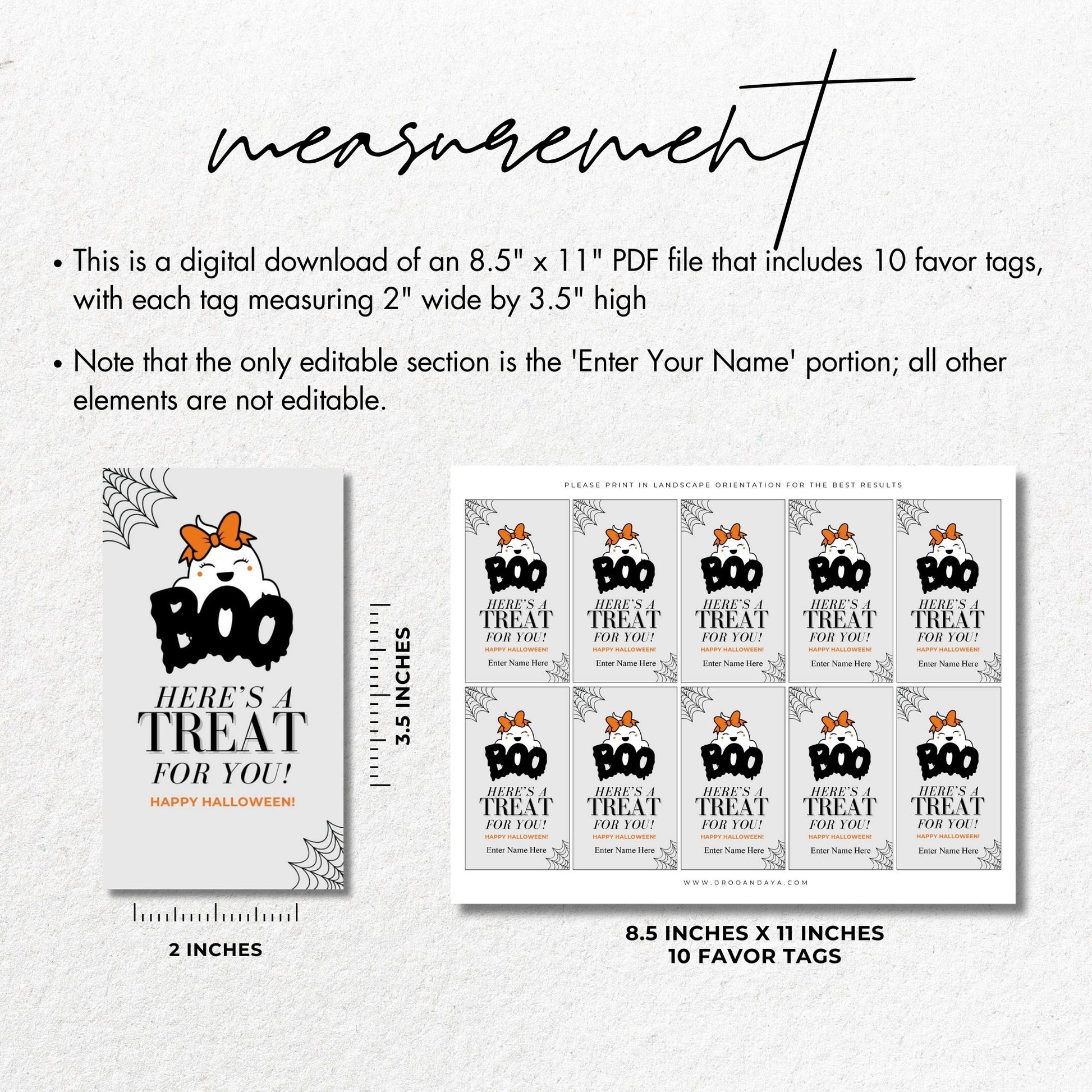 Boo Here's a Treat for You Halloween Favor Tag 2x3.5