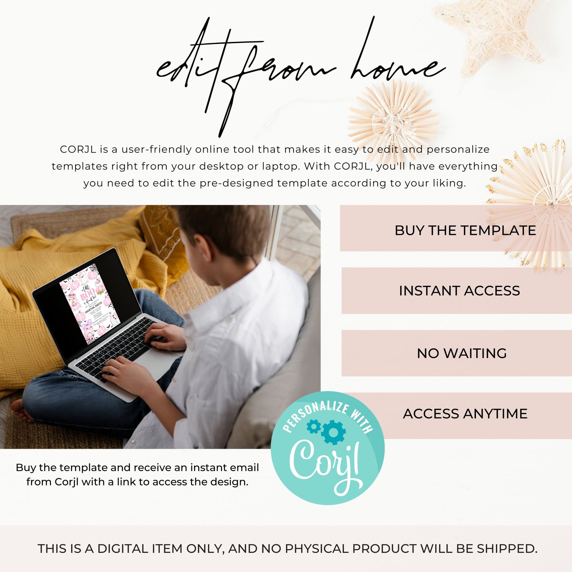 After purchase, you’ll receive two emails: one from Etsy with instructions and one from Corjl with a link to access and edit your template. Simply customize, and you're ready to print!