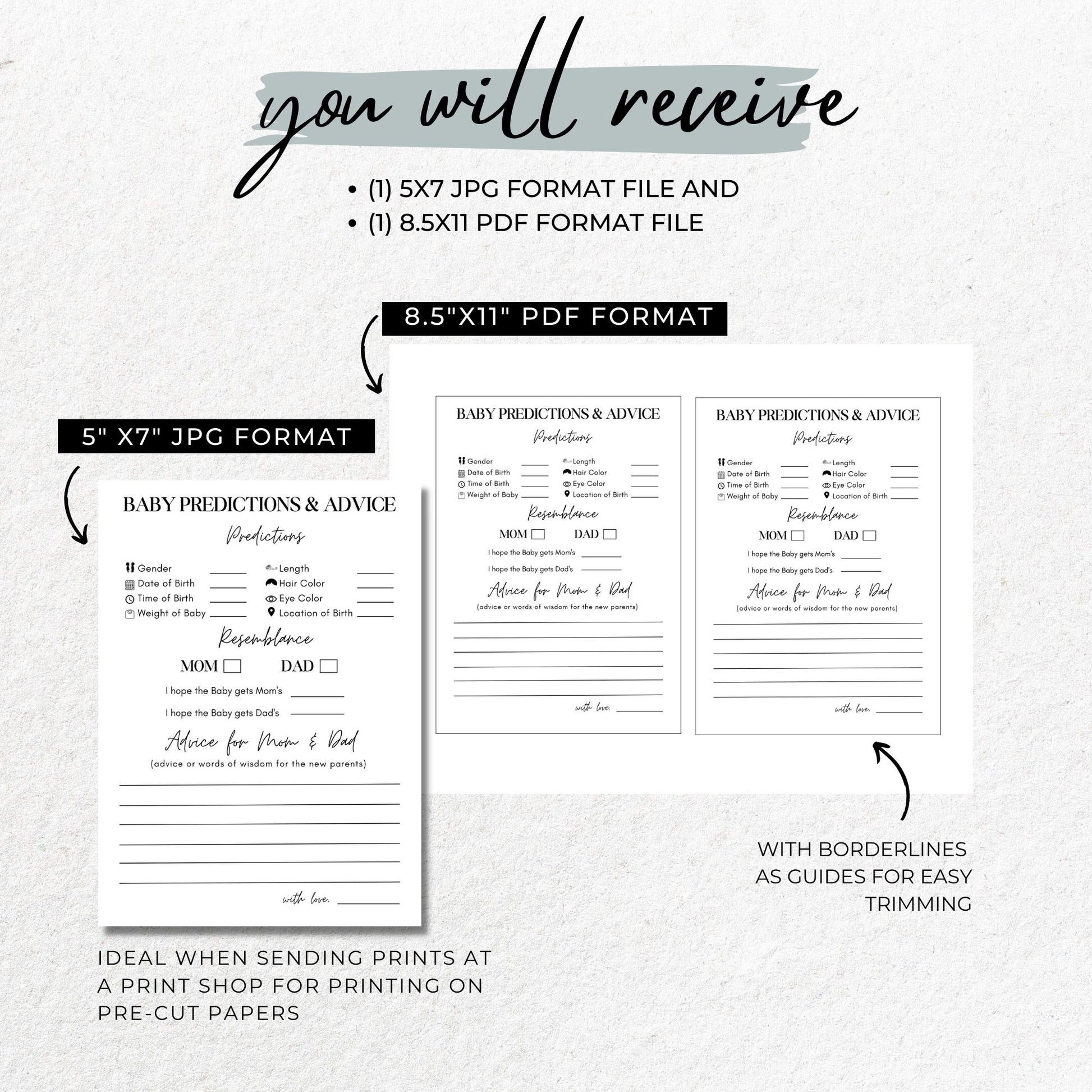 Elevate your baby shower with our Baby Predictions and Advice printable cards. Create lasting memories with heartfelt love and wisdom. Perfect for gifts or celebrating this joyous occasion!