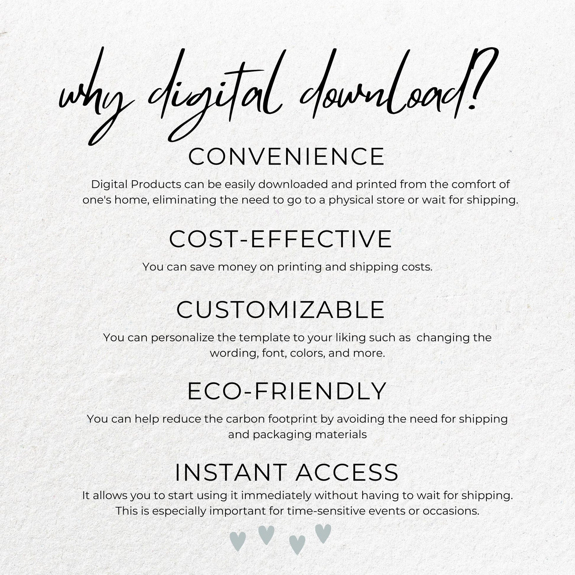 This is not a physical product, but a digital download. By purchasing the digital product, customers will receive a digital file that can be printed on a home printer or sent to a local print shop, making it a great choice for those who want a quick and easy solution for their special occasion.