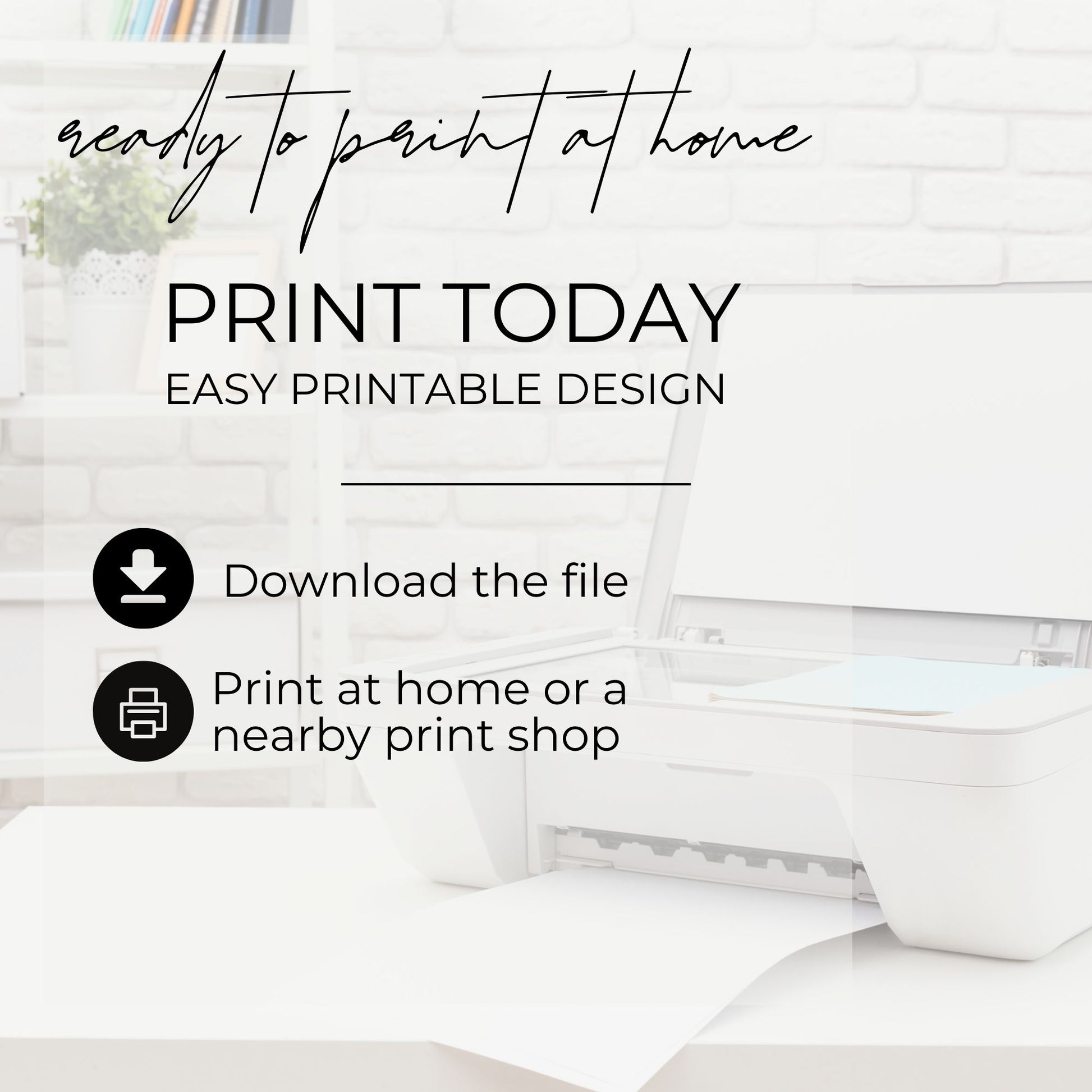 This is not a physical product, but a digital download. By purchasing the digital product, customers will receive a digital file that can be printed on a home printer or sent to a local print shop, making it a great choice for those who want a quick and easy solution for their special occasion.