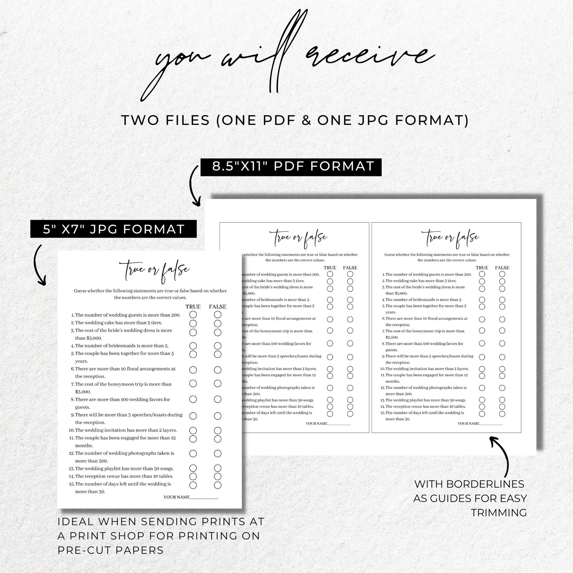 This True or False Bridal Shower Game is perfect for creating a fun, interactive event. This printable game features true or false questions that are tailored perfectly to the bride-to-be. Get your guests laughing and engaged in the festivities with this must-have party game.