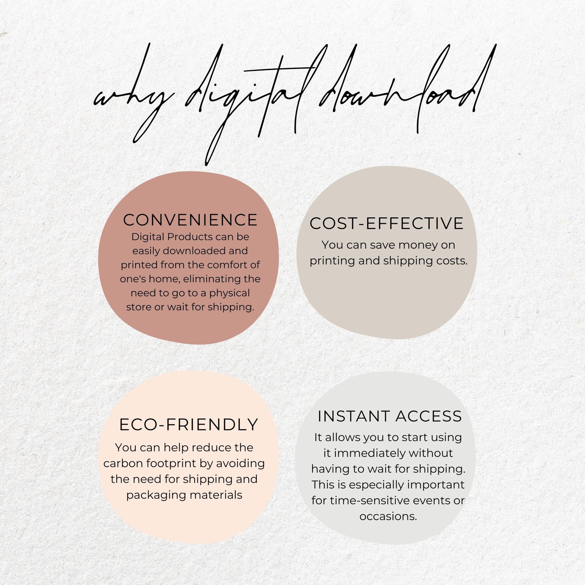 This is not a physical product, but a digital download. By purchasing the digital product, customers will receive a digital file that can be printed on a home printer or sent to a local print shop, making it a great choice for those who want a quick and easy solution for their special occasion.