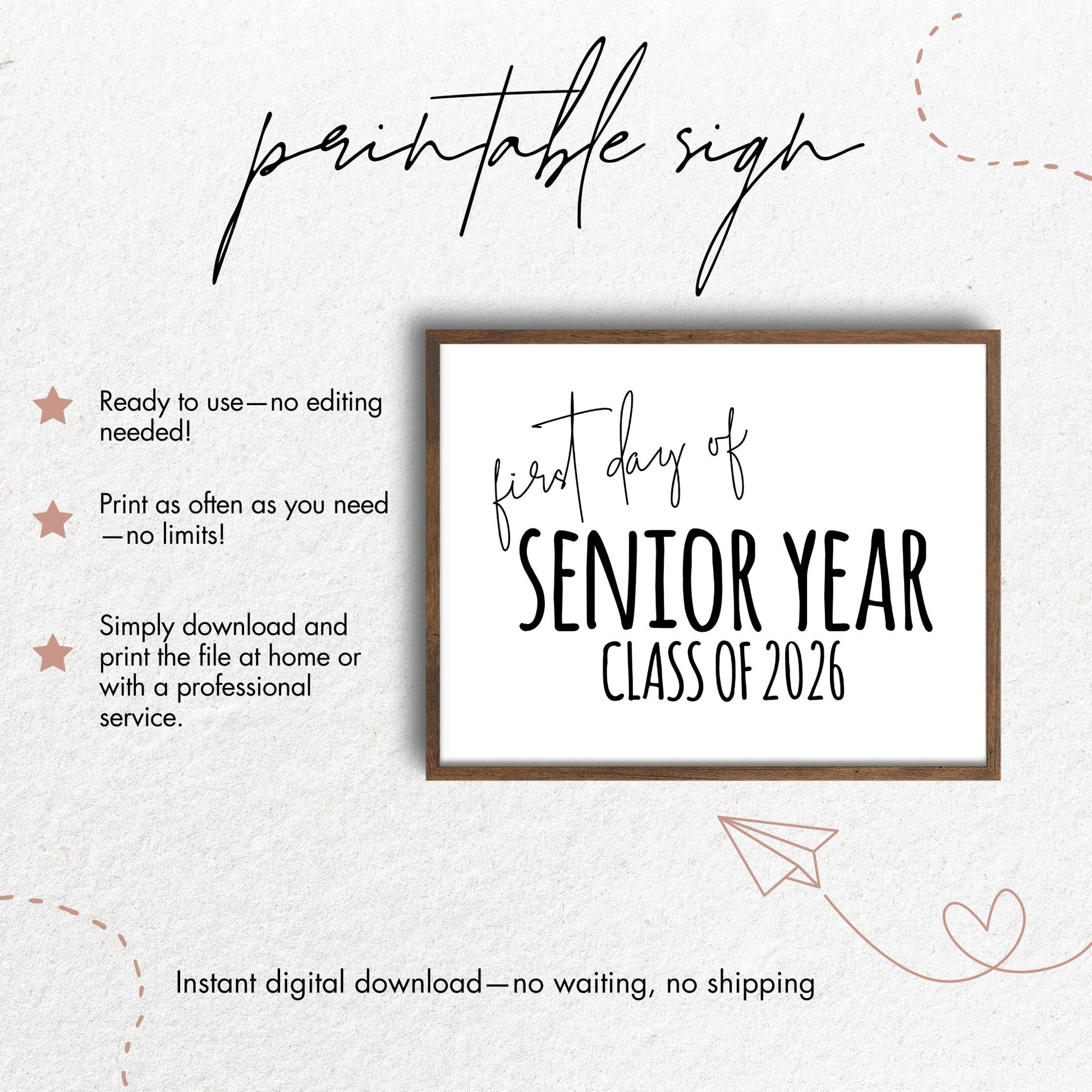 First Day of Senior Year Class of 2026 Printable Sign 8x10