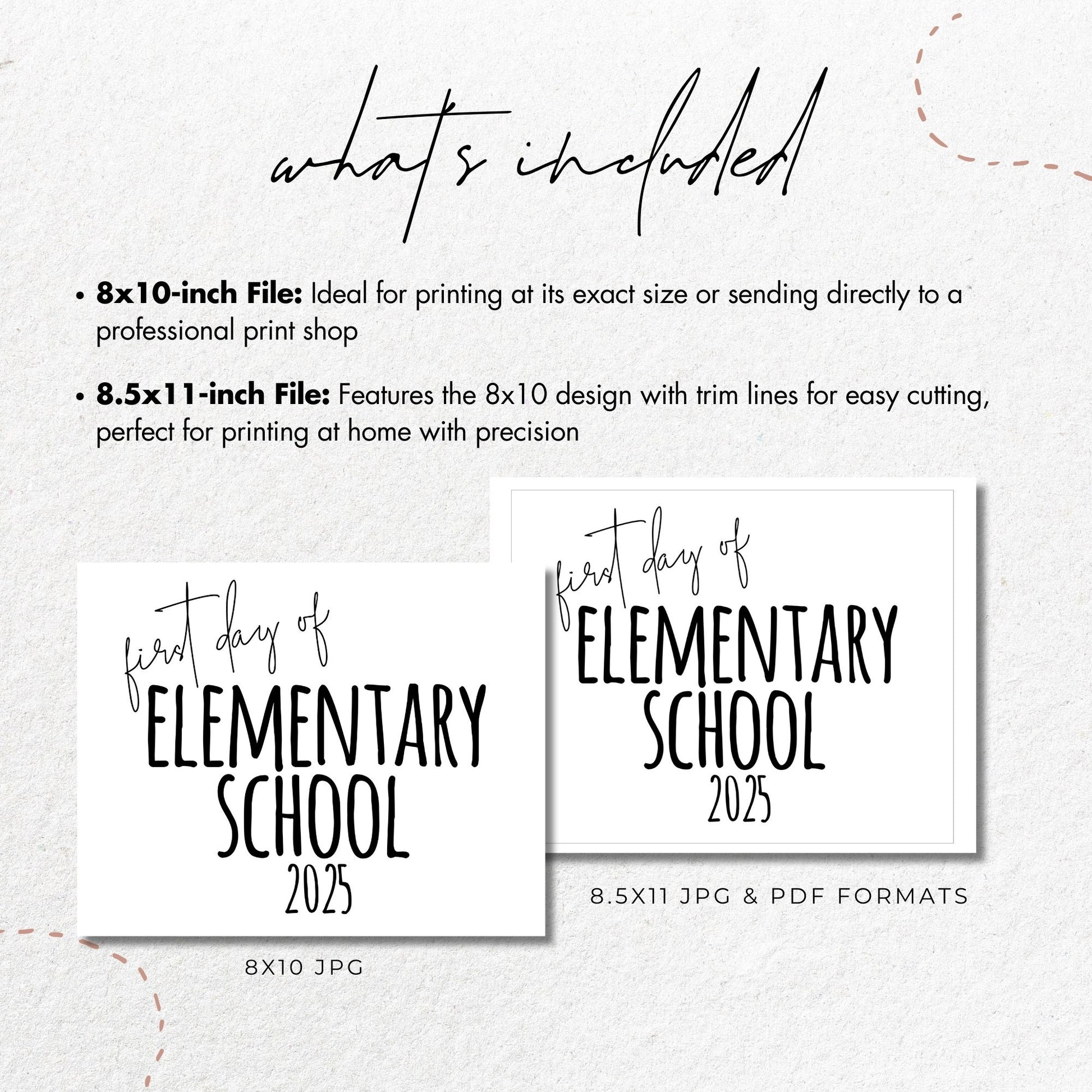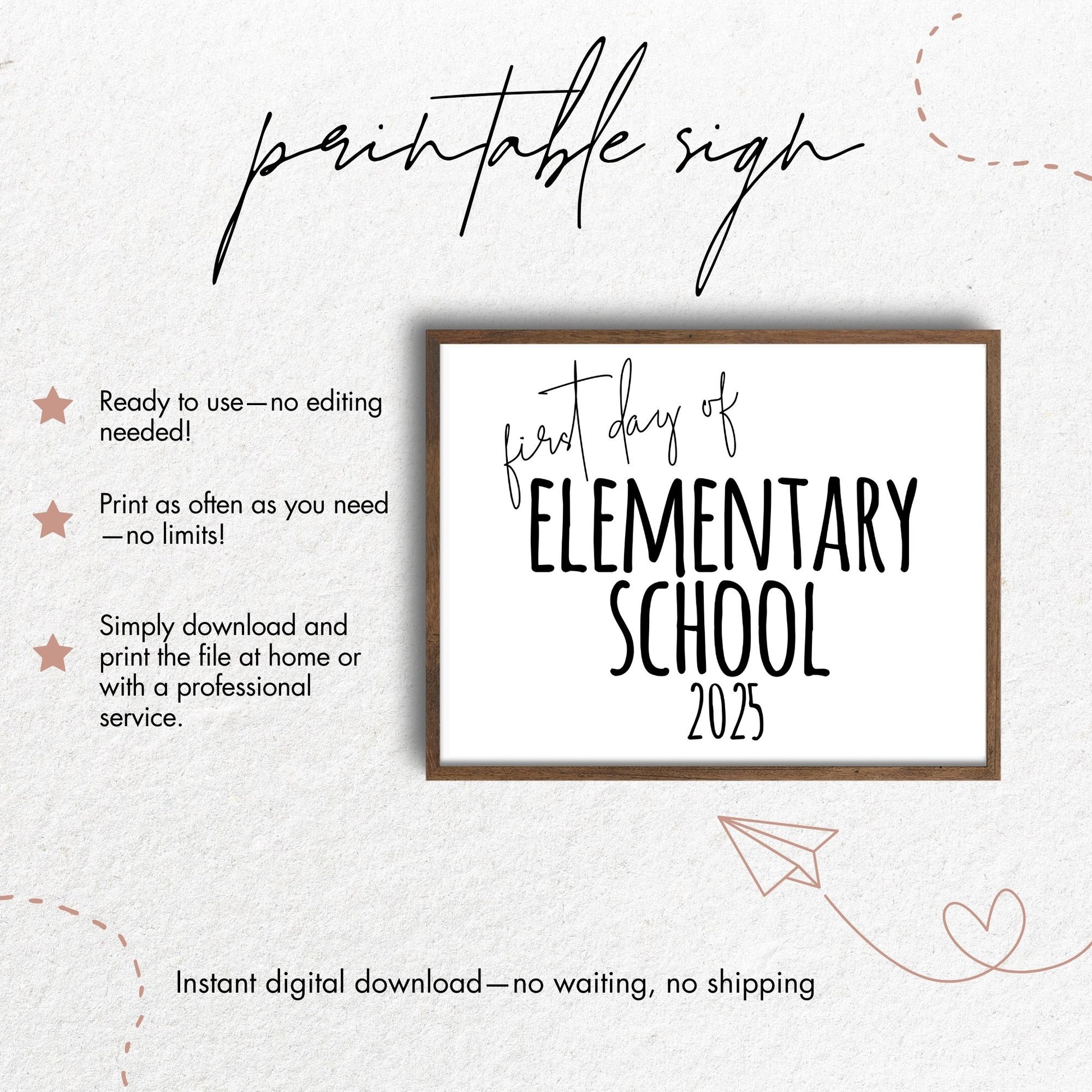 First Day of Elementary School 2025 Sign Printable PDF 8x10