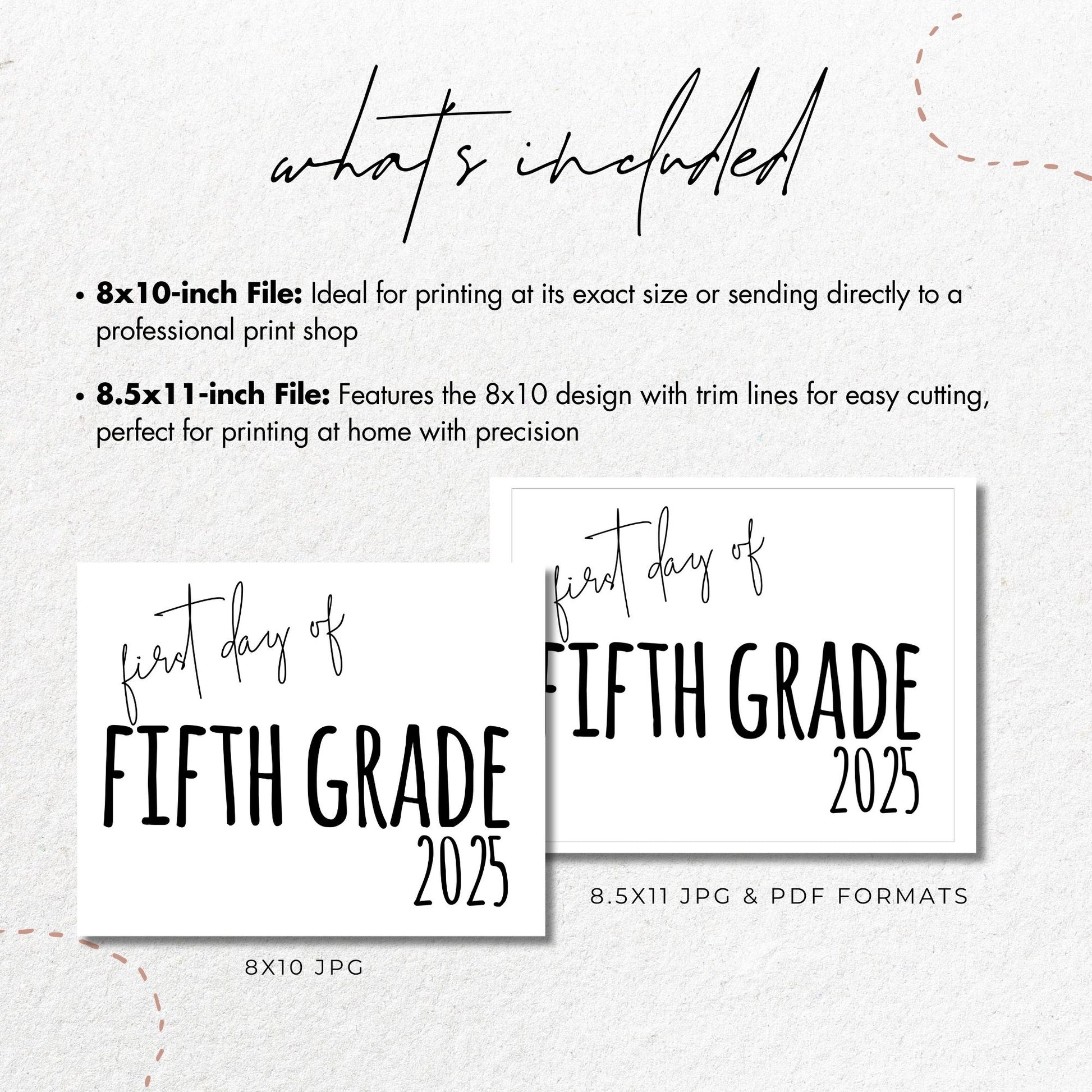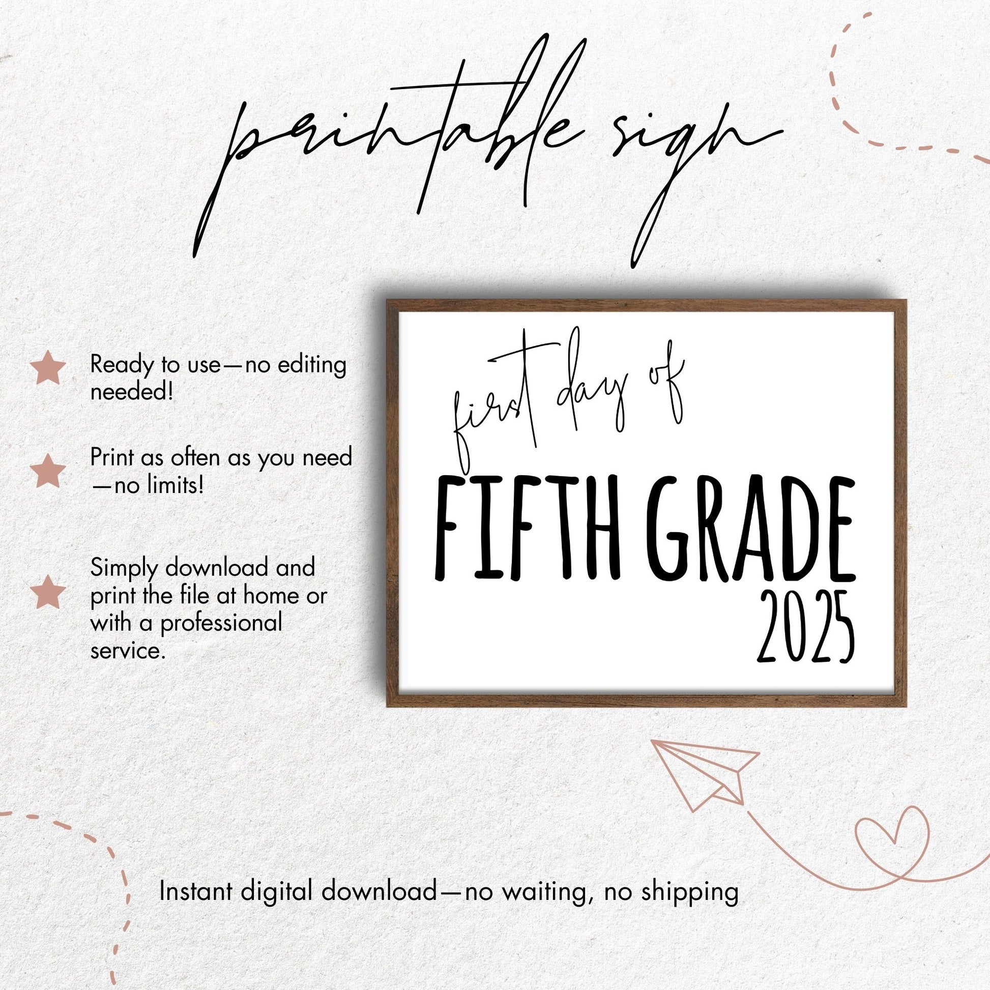 First Day of Fifth Grade 2025 Printable Sign 8x10
