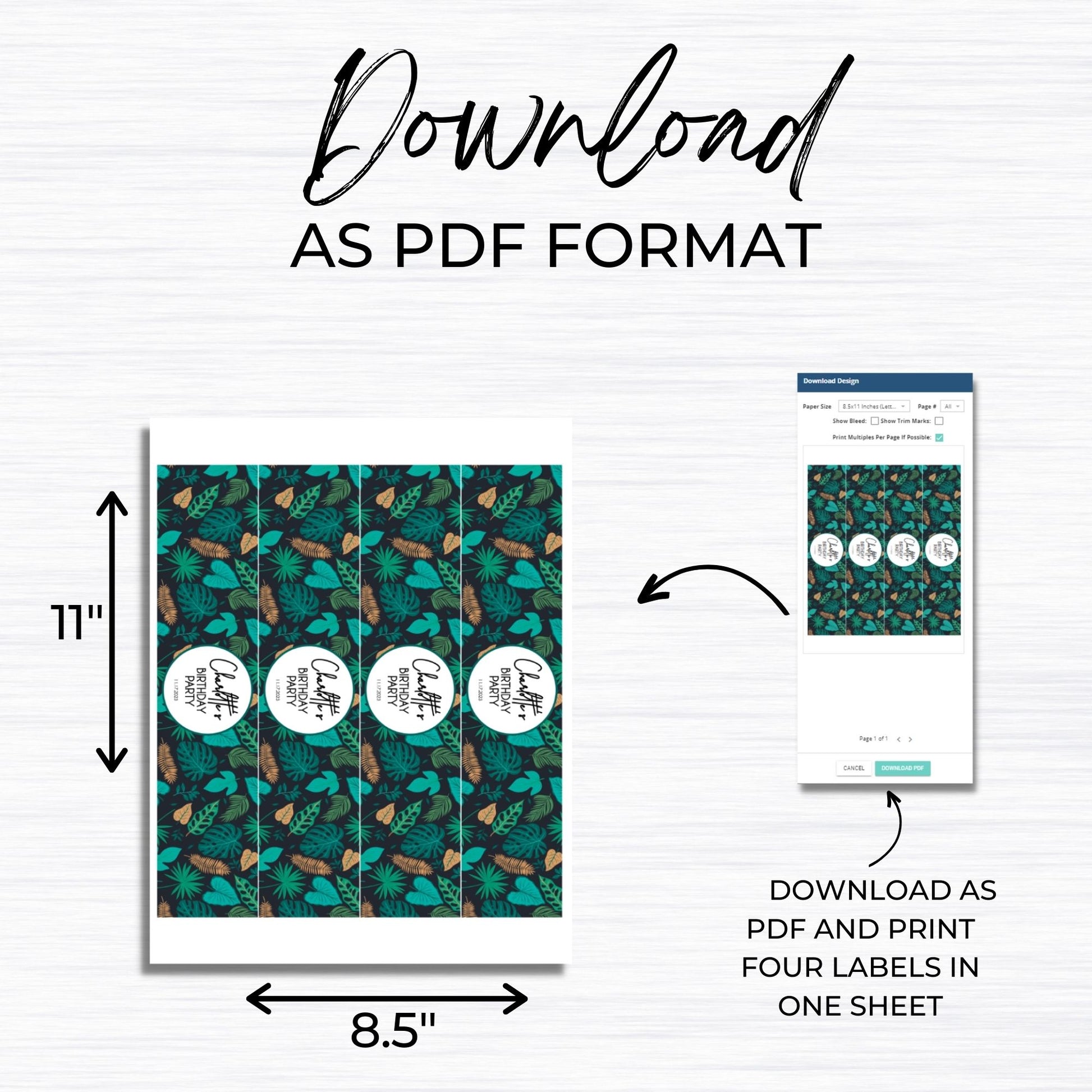 Make a splash with this tropical water bottle label template! Create eye-catching designs with vibrant colors and fun graphics, perfect for livening up any occasion. The label measures 9x2 and can be personalized with your own text and images. Add a touch of the tropics and make your event unforgettable!