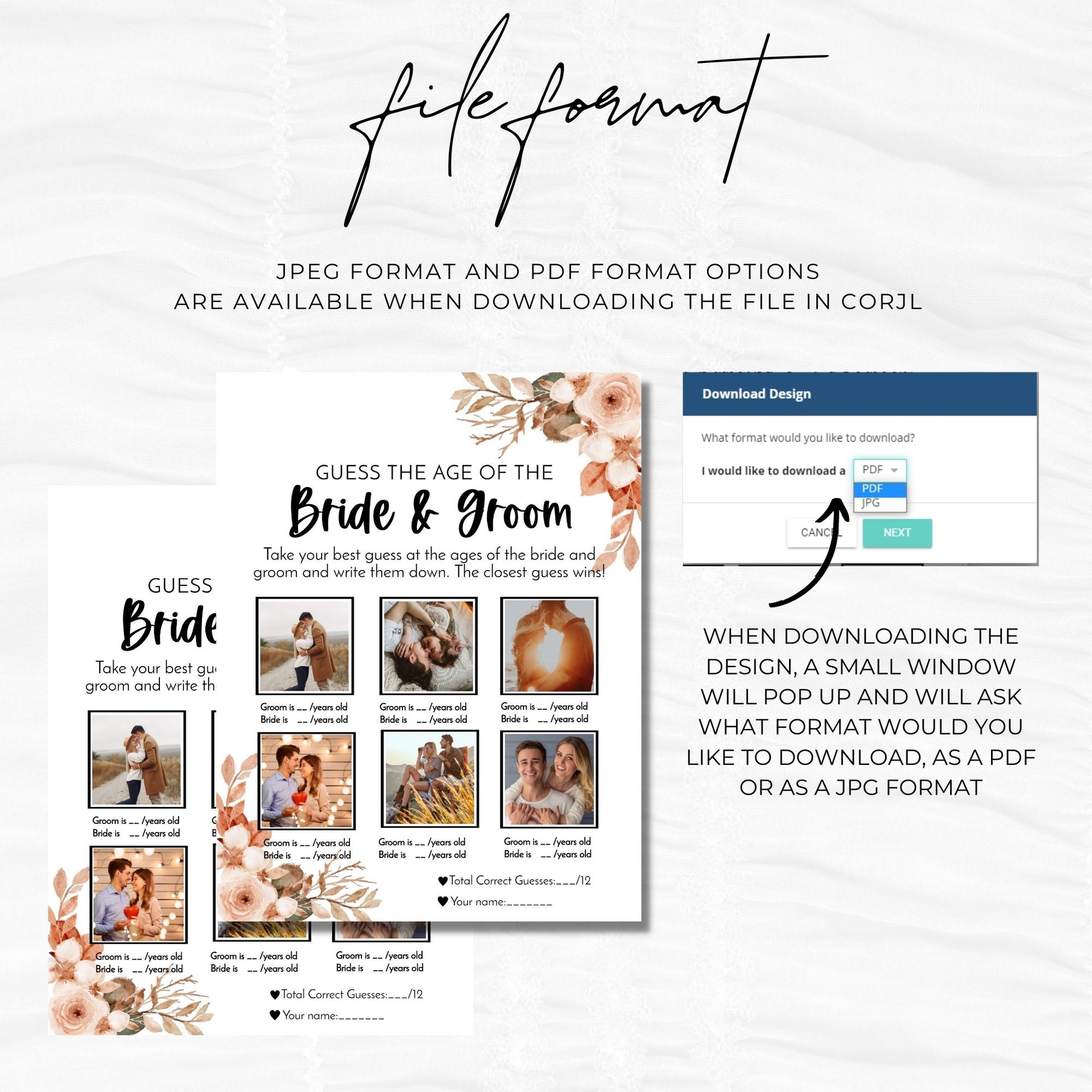 Bring the bride and groom to the center of attention with the Guess the Age of the Bride and Groom Game Template! Guests will be challenged to guess the age of the newlyweds. A great way to kick off your reception and keep your guests entertained.