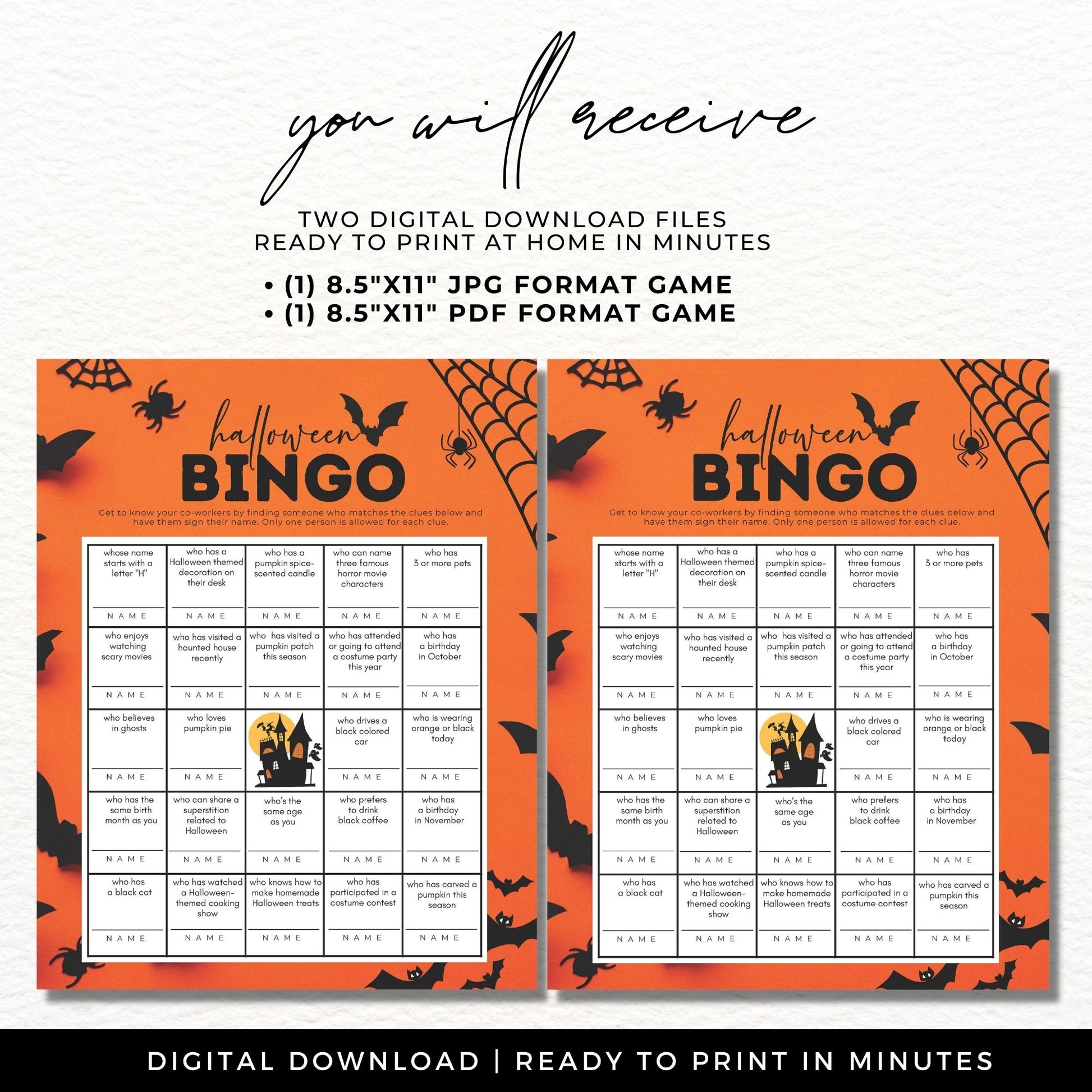 Challenge your co-workers to the spookiest Halloween game in town! Our 'Find the Co-Worker' Bingo game is sure to be a hit at your office party. With a digital download and ready to print, this game will have all your colleagues participating to try to find the co worker that matches clue. Trick or treat? Let's play Bingo!