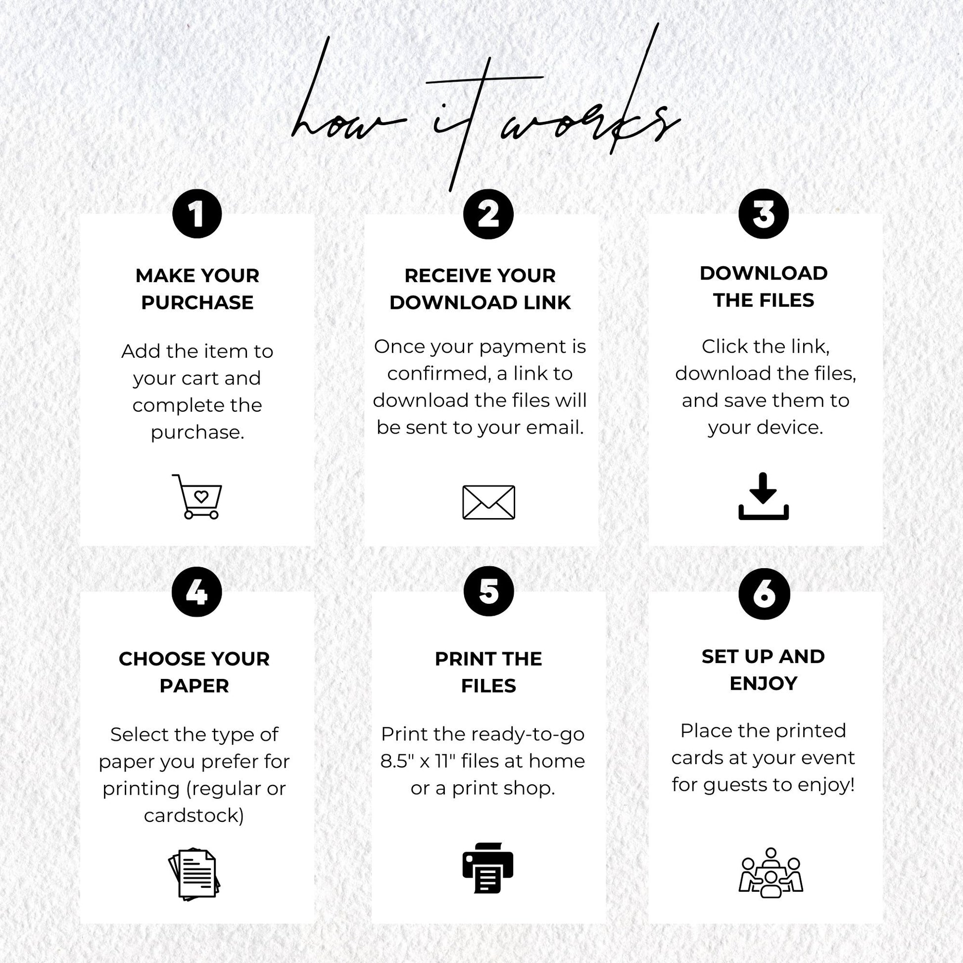 Upon purchase, you will receive a digital file to print at home or send to a local print shop.