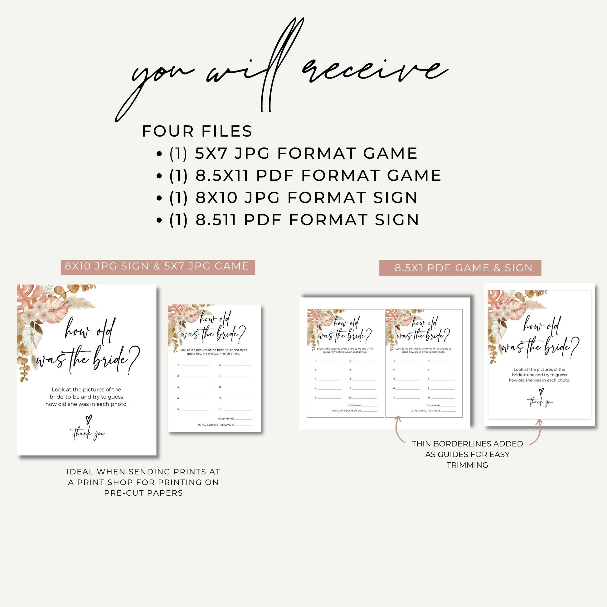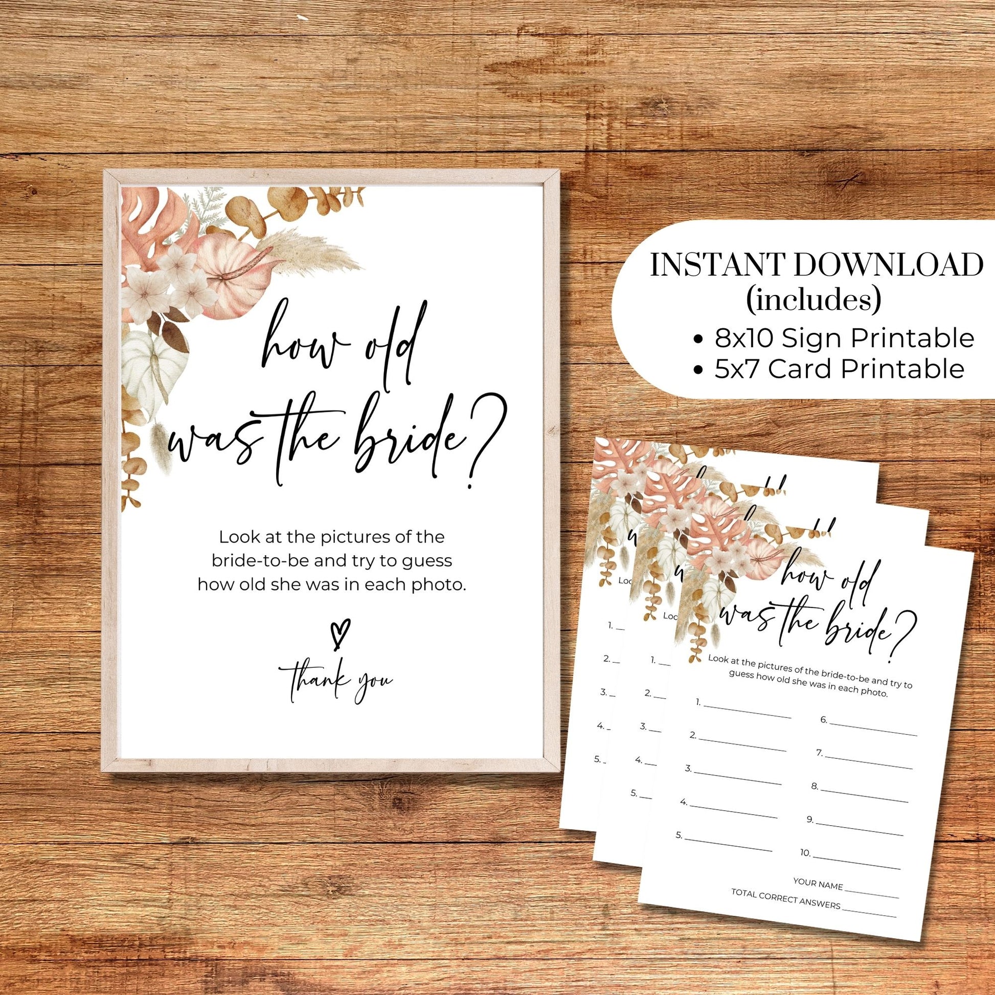 How Old Was the Bride Photo Game 8x10 Sign & 5x7 Game Card Set