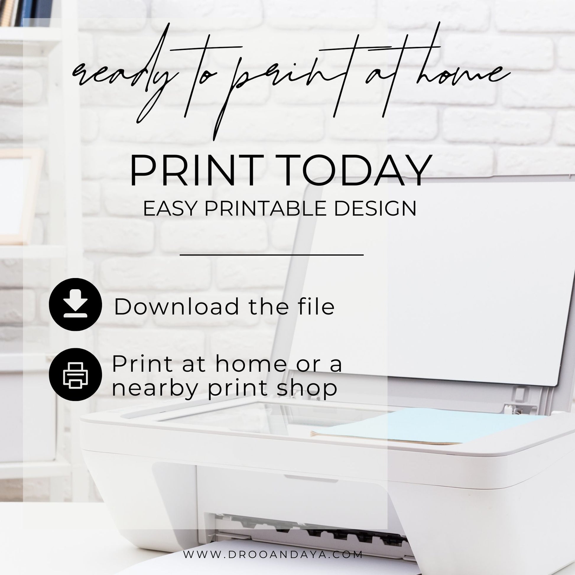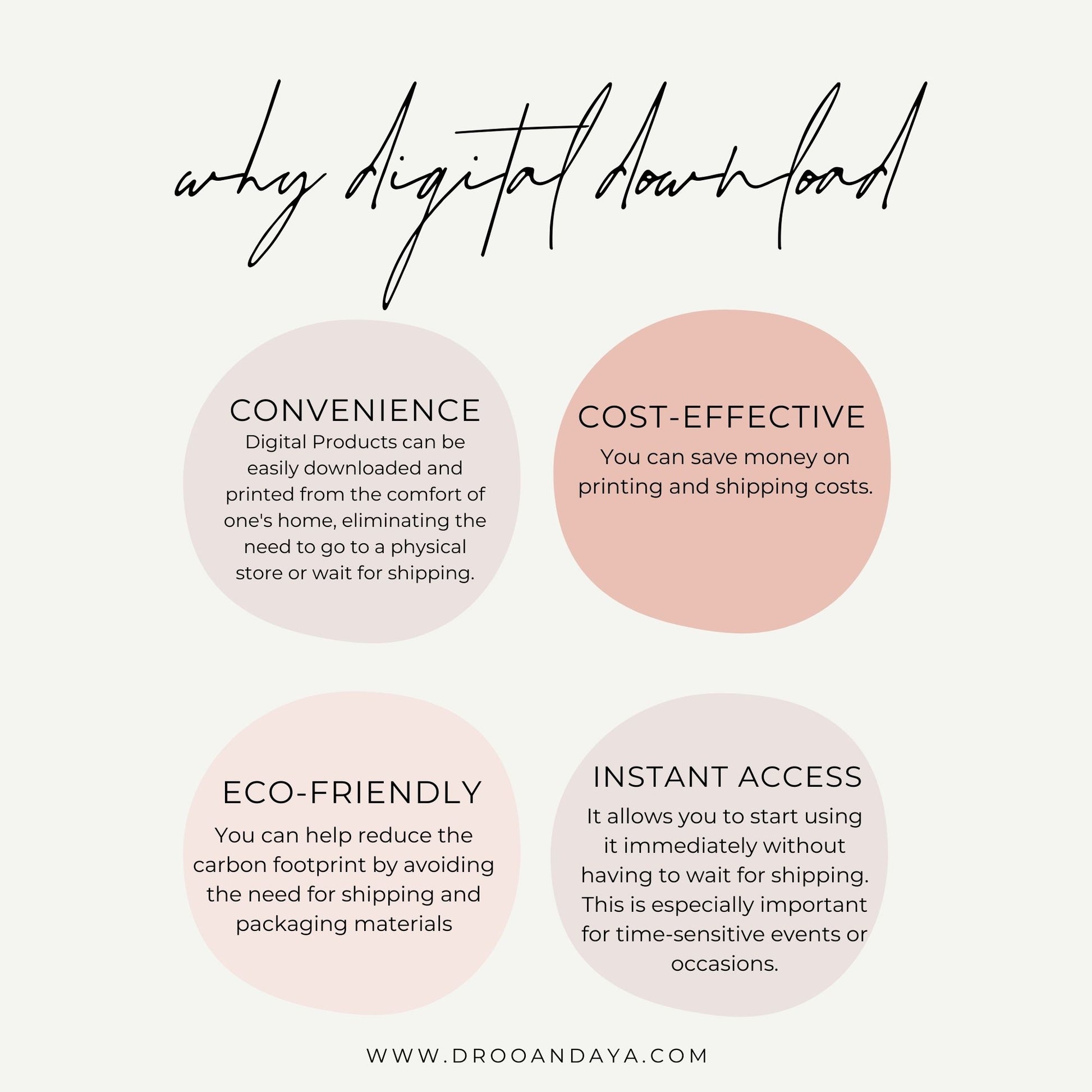 This is not a physical product, but a digital download. By purchasing the digital product, customers will receive a digital file that can be printed on a home printer or sent to a local print shop, making it a great choice for those who want a quick and easy solution for their special occasion.