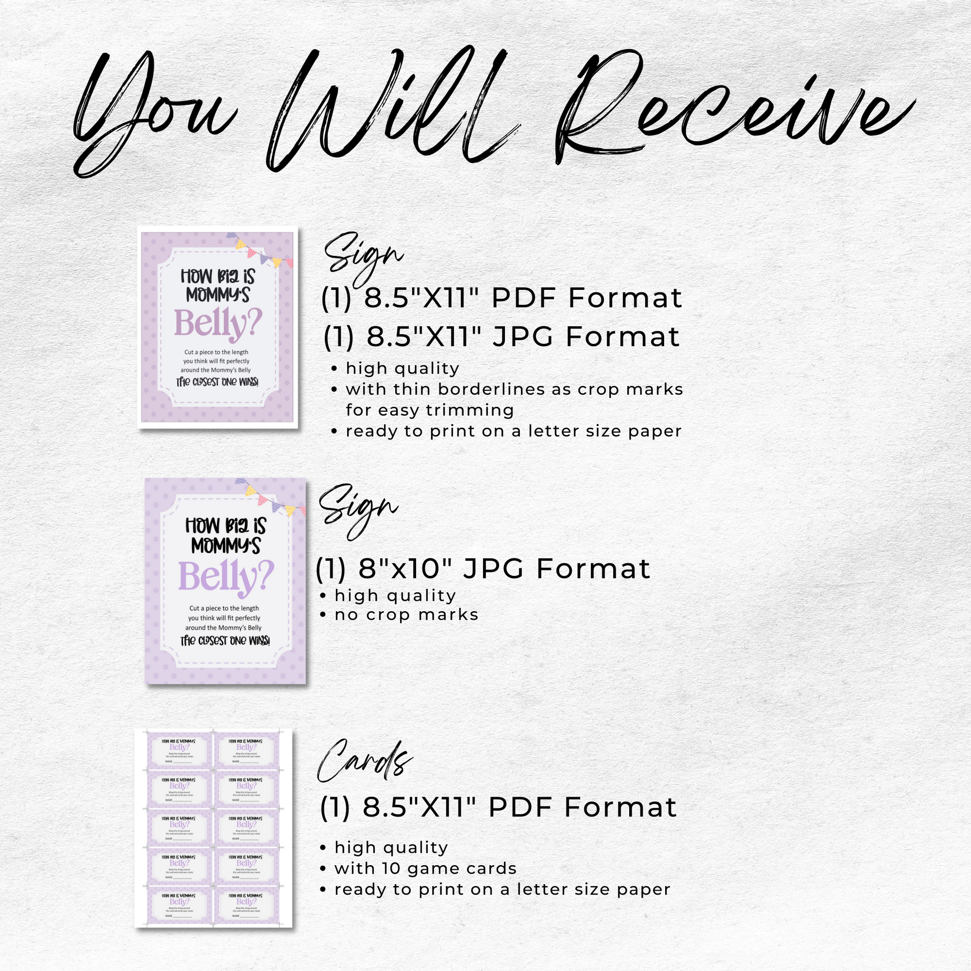 How Big is Mommy's Belly Baby Shower Game Sign - Purple