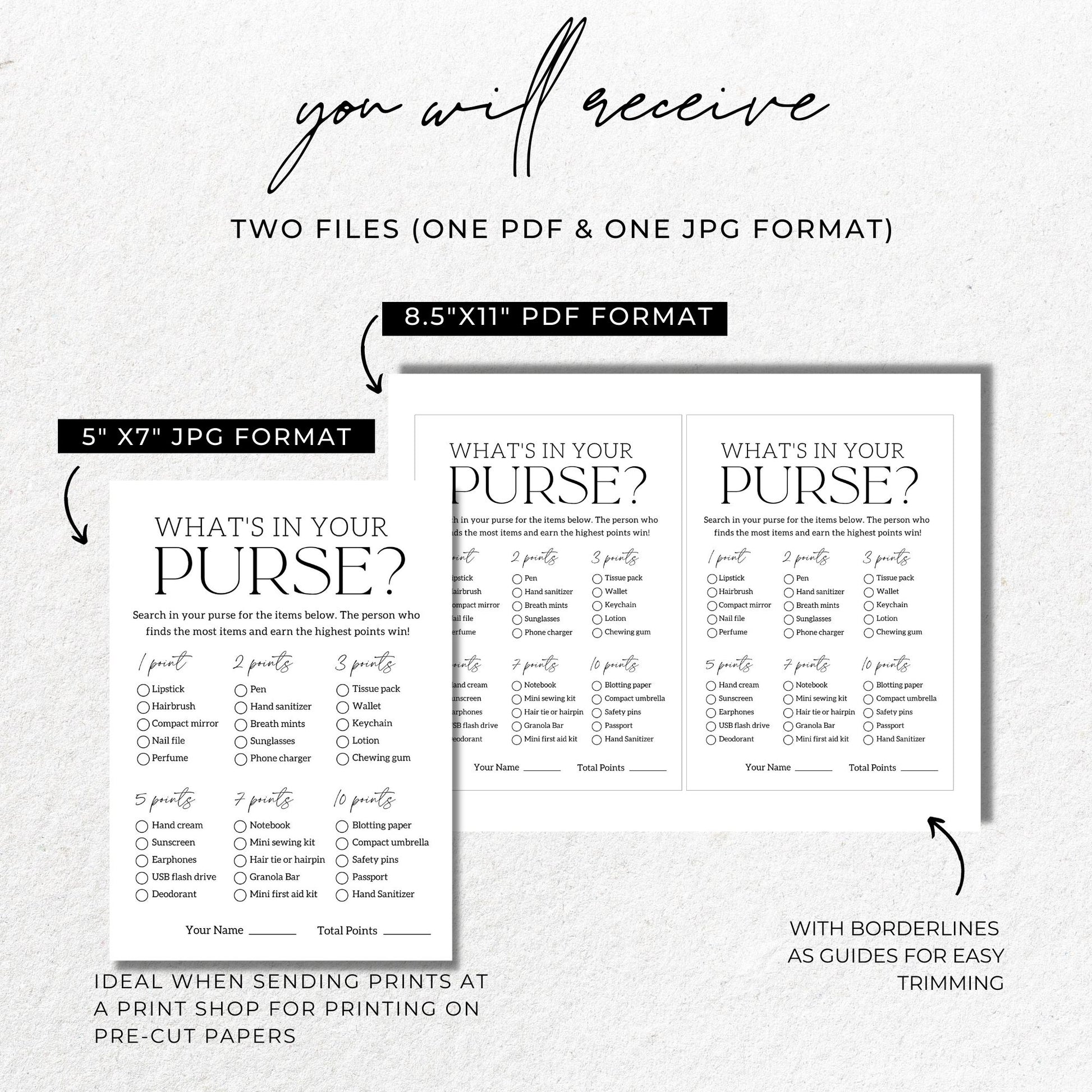 What's In Your Purse Bridal Shower Game Printable