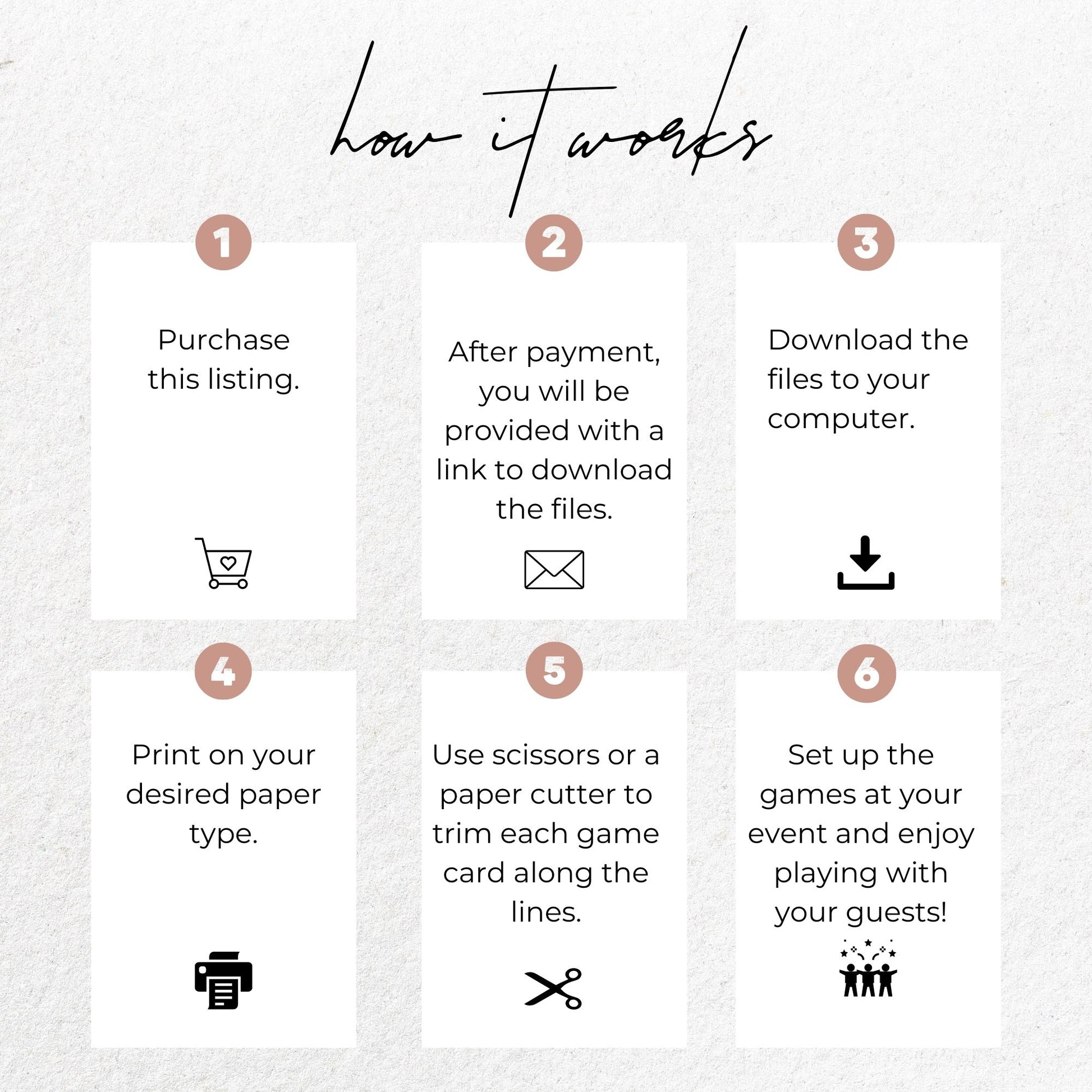 - (1) 8.5" X 11" size PDF file with two game cards on the sheet, ready to print on letter-size paper.