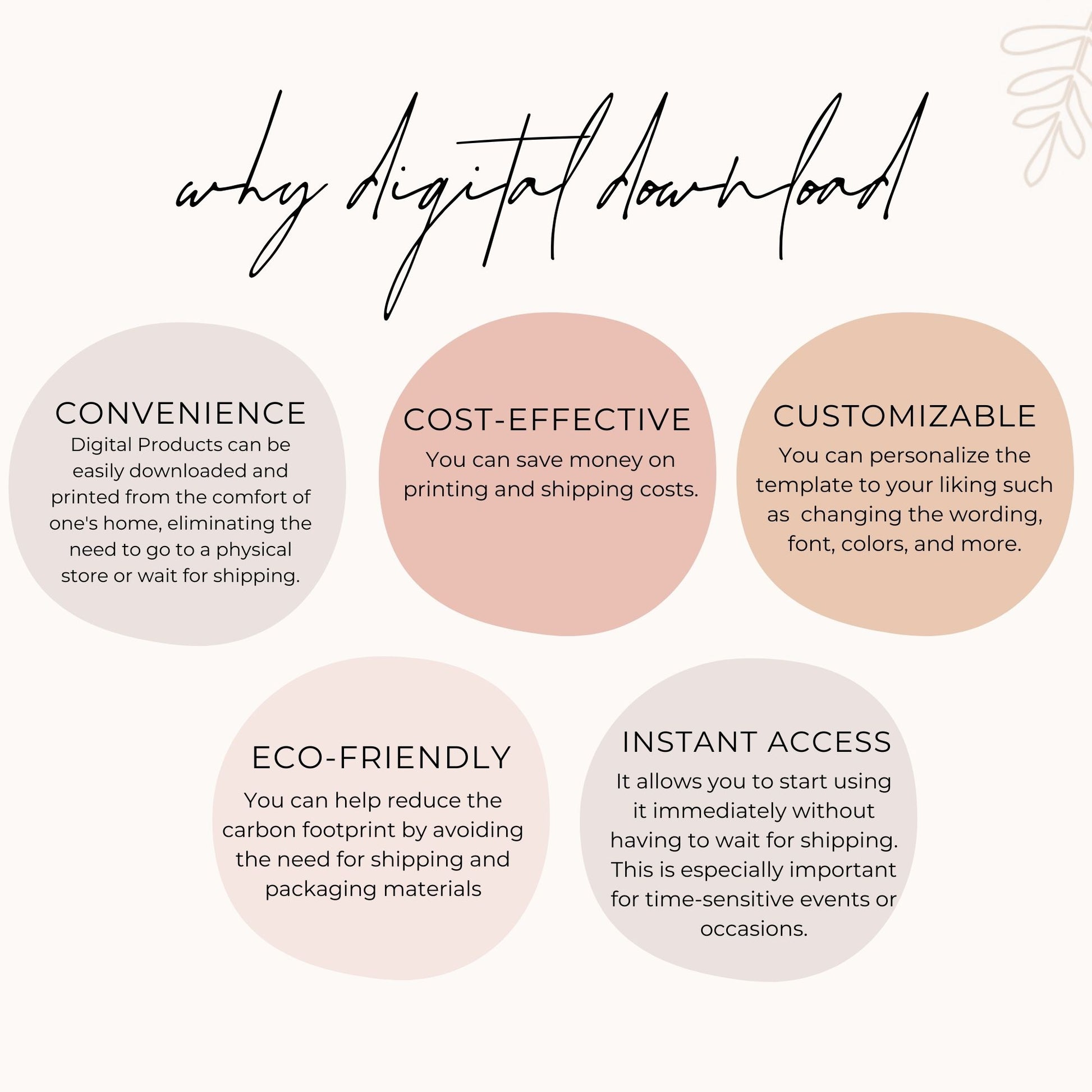 This is not a physical product, but a digital download template. By purchasing the digital product, customers will receive an editable template that can be printed on a home printer or sent to a local print shop, making it a great choice for those who want a quick and easy solution for their special occasion.