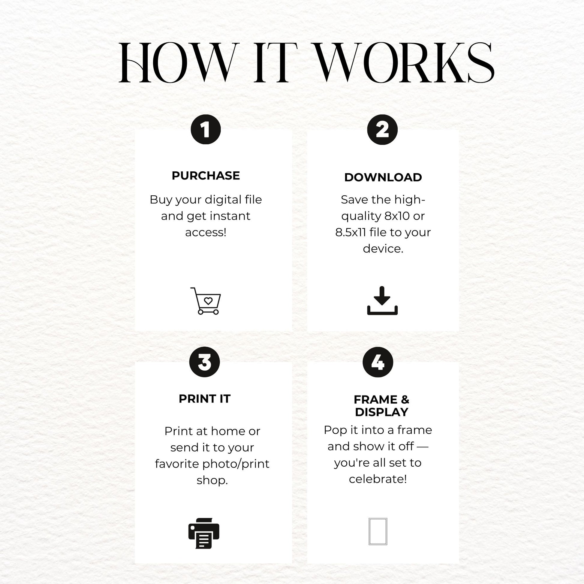 This is not a physical product, but a digital download. By purchasing the digital product, customers will receive a digital file that can be printed on a home printer or sent to a local print shop, making it a great choice for those who want a quick and easy solution for their special occasion.