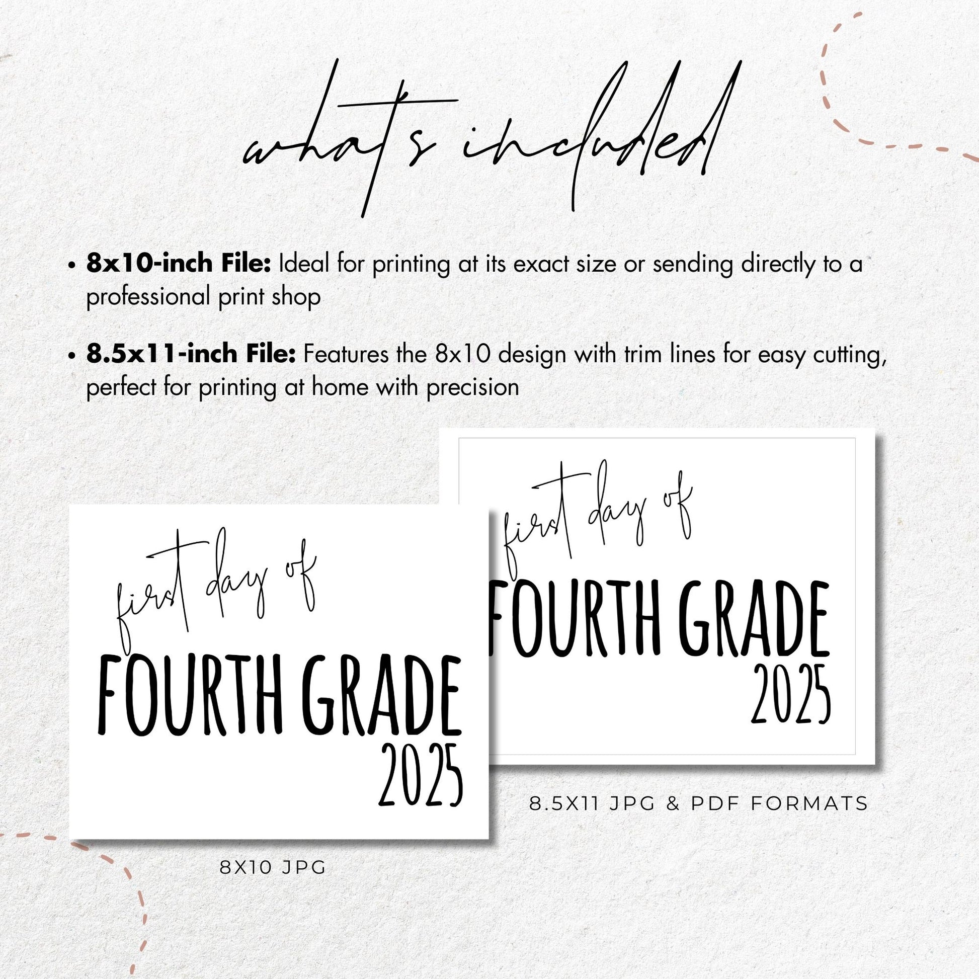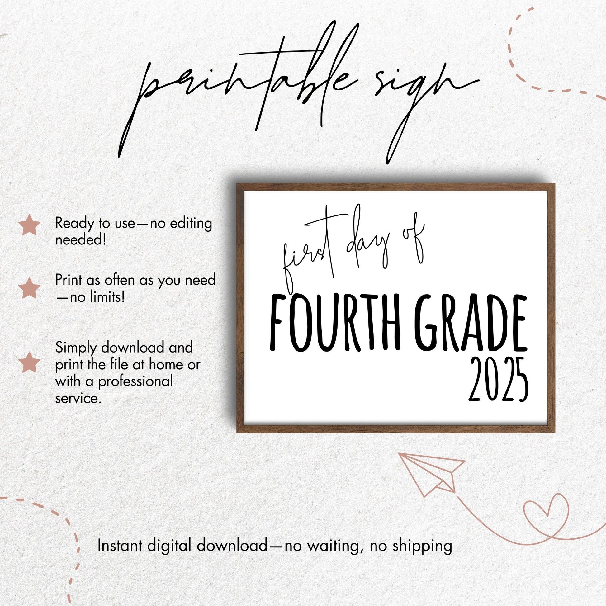 Celebrate the first day of fourth grade with this 8x10 printable sign! Perfect for back-to-school photos, this stylish design is a great keepsake to mark the beginning of 4th grade in 2024.