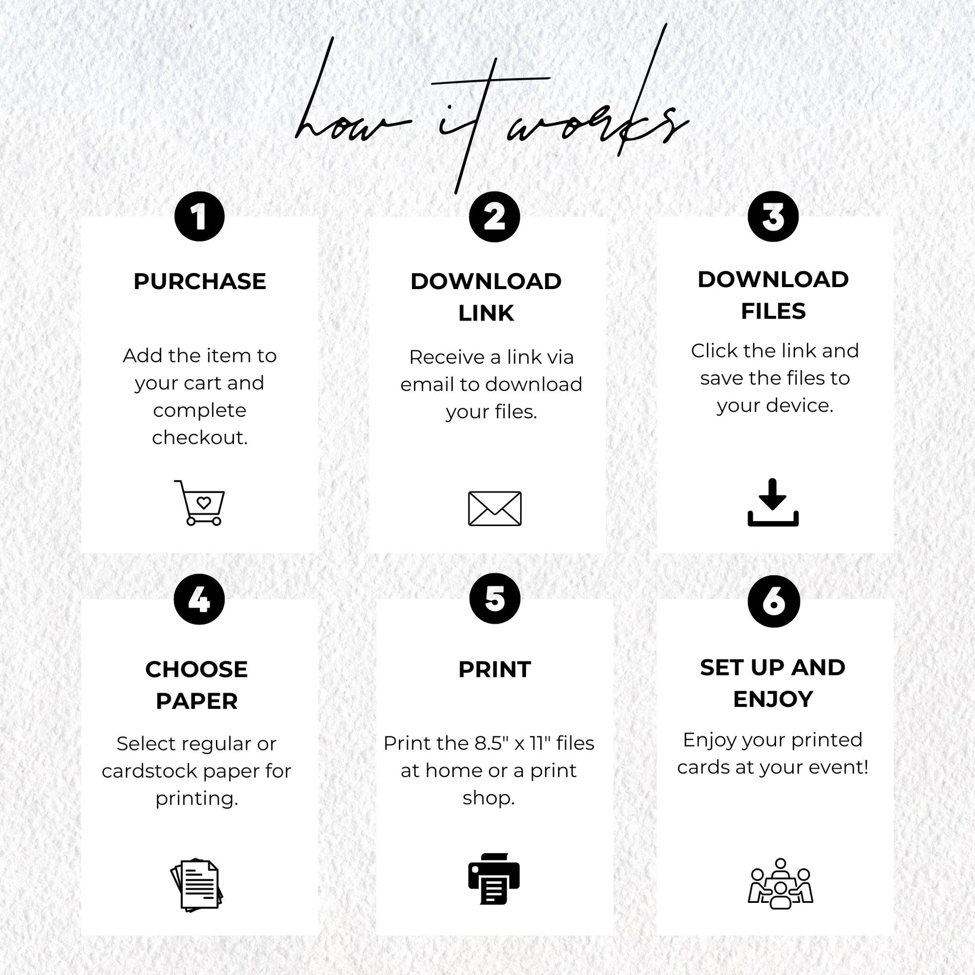 Upon purchase, you will receive a digital file to print at home or send to a local print shop.