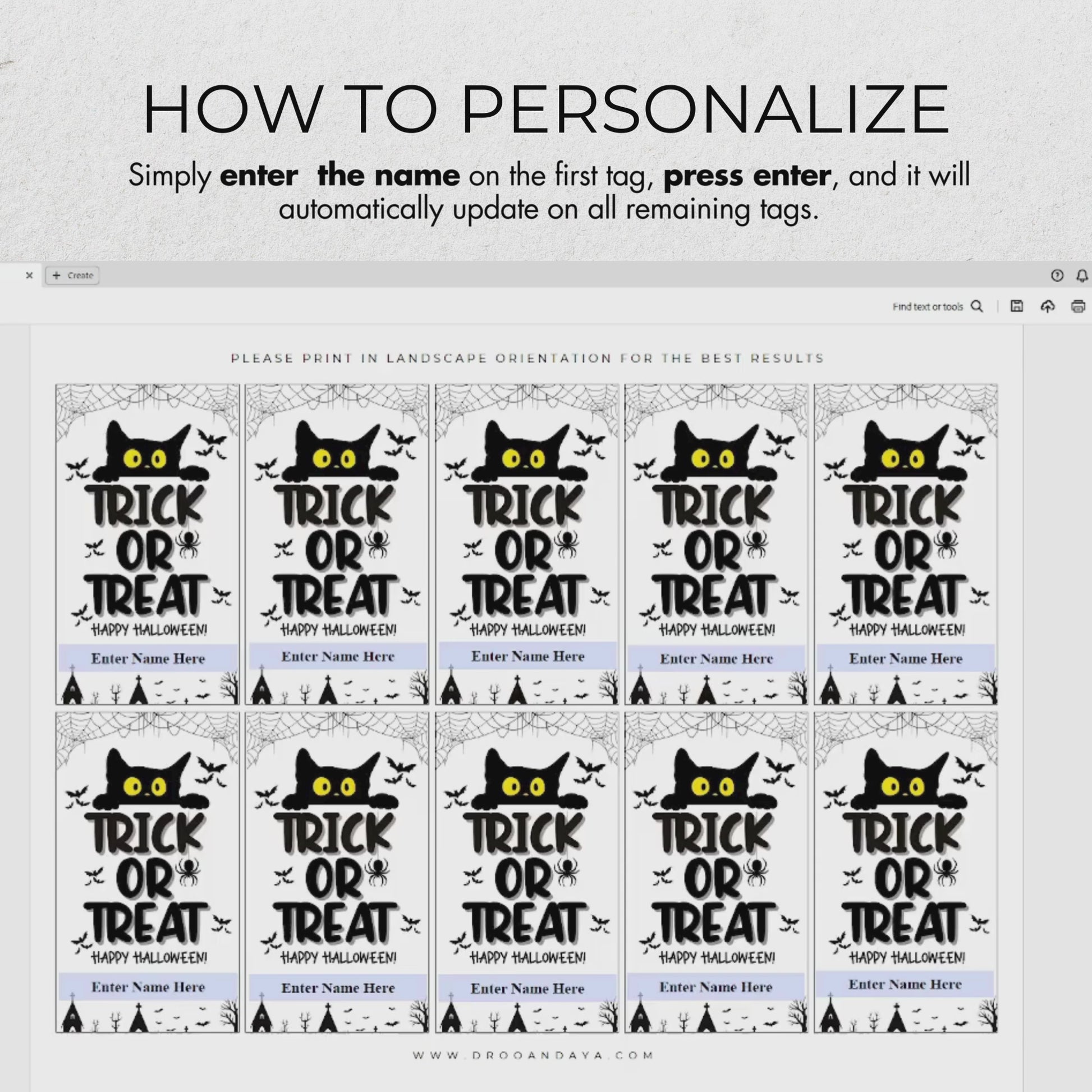 - Once your purchase is complete, you’ll receive an instant download of the PDF file, allowing you to personalize and print your tags immediately.