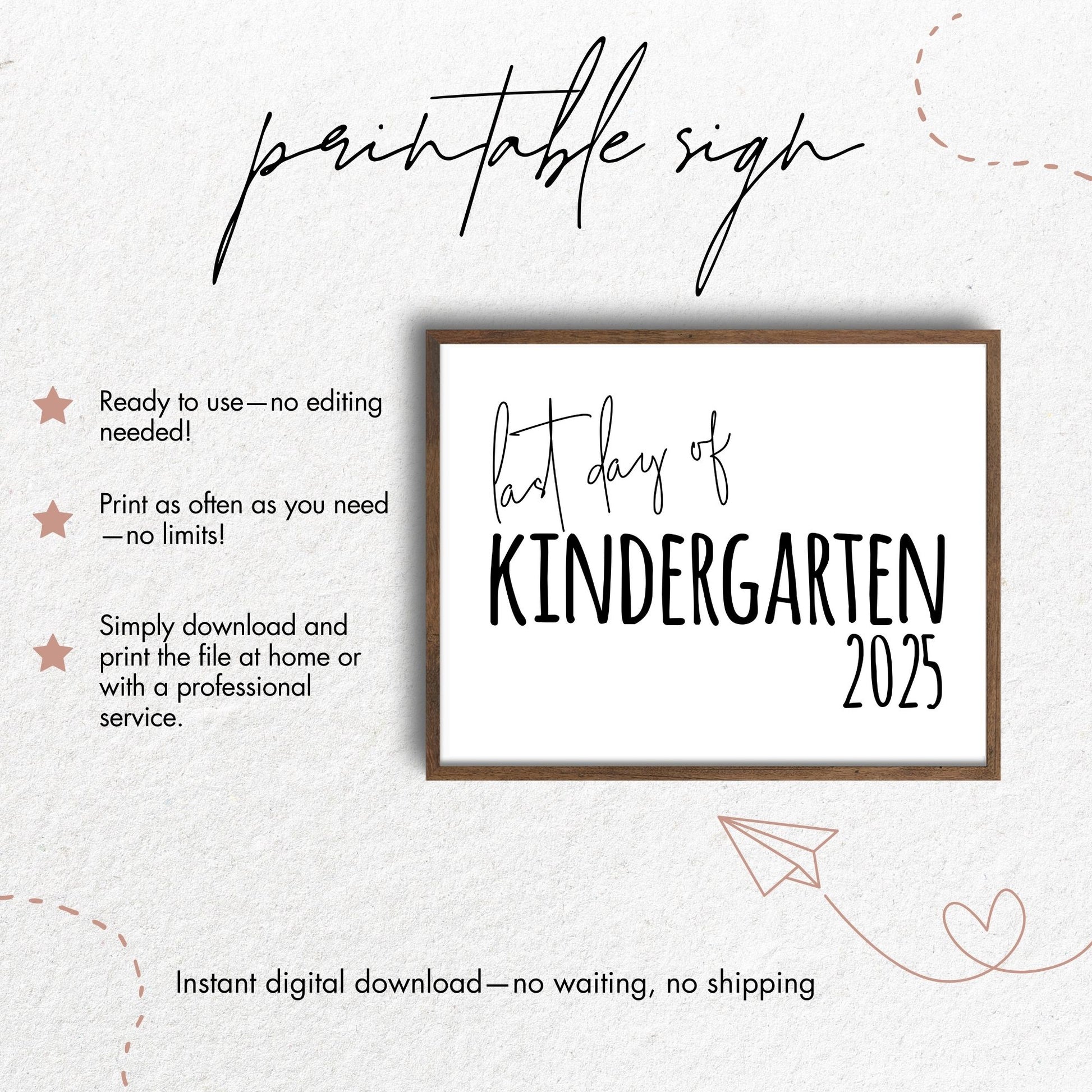 Capture the joy of your child's last day of Kindergarten with this Last Day of Kindergarten sign! Perfect for photos and memories, this 8x10 printable will be a cherished keepsake. Celebrate their accomplishments and create a lasting reminder of this special milestone.