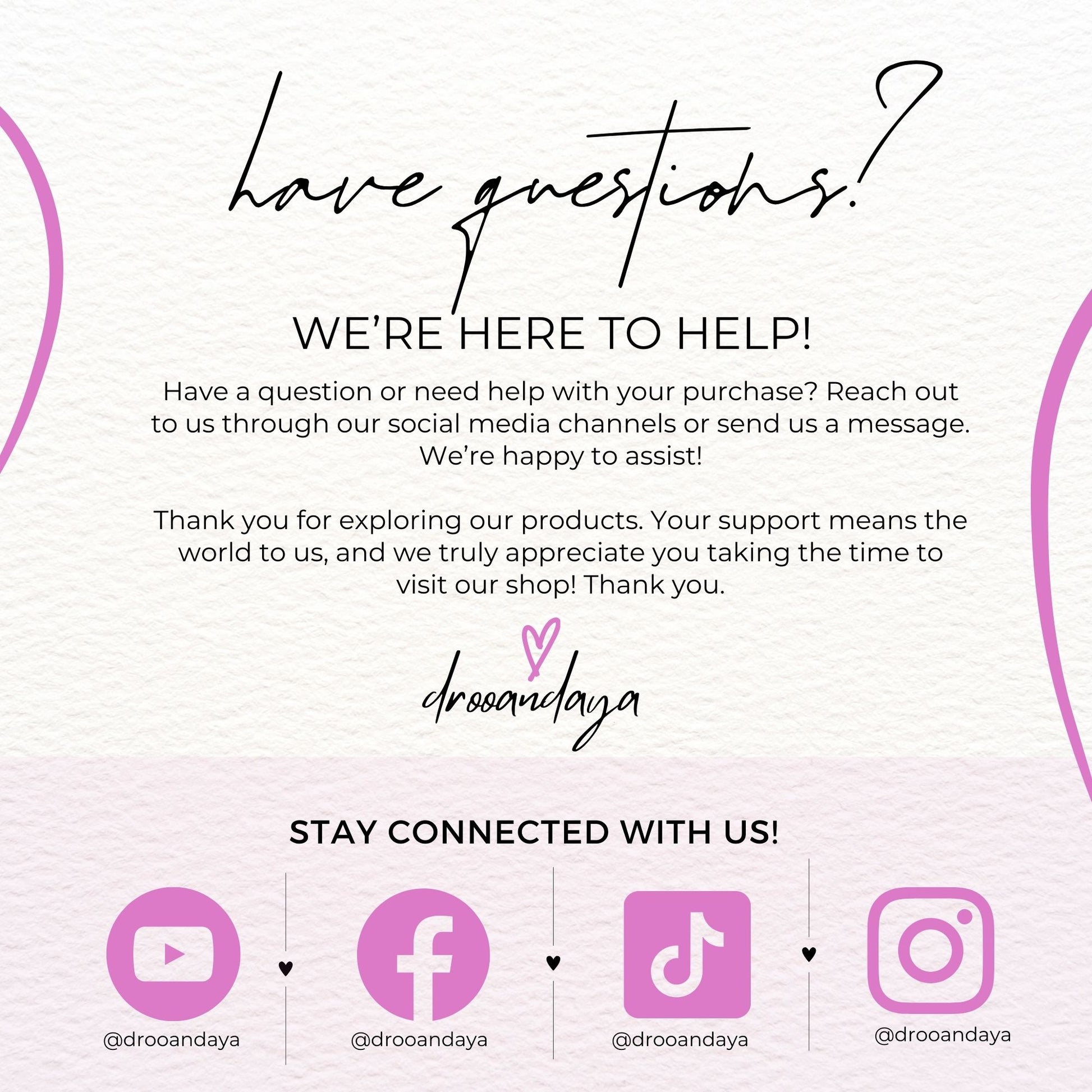 We're here to help! Feel free to reach out with any questions or concerns.